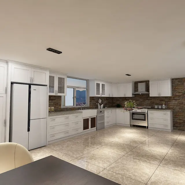 Large Kitchen Ideas Modern : Modern White Kitchen Design Shaker Kitchen Cabinet Door Quartz Countertop Large Kitchen Island Stone Backsplash Integrated Stove Kitchen Cabinets Aliexpress / This is large kitchen space combines two wood finishes to achieve this unique look.